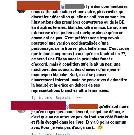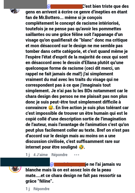 Notons que sur Instagram, un débat sur le racisme intériorisé a volé un peu plus haut, débattant des traits d’Ellana (carrés/finesse), et de la conception de ces traits dans l’imaginaire de beauté blanche occidentale. De nombreux internautes ont ainsi débattu des traits plus que de la couleur.