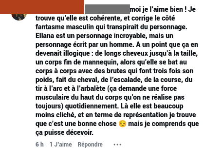 Les commentaires détaillés : backlash réactionnaire sur Ellana