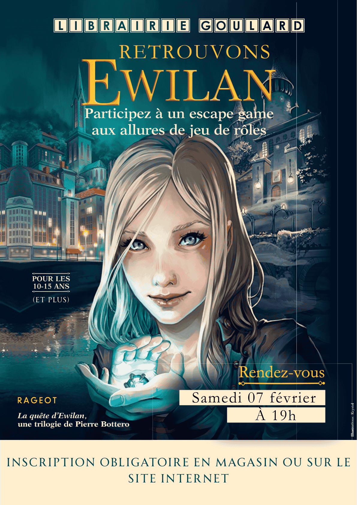 Librairie Goulard et Rageot organisent un Escape-Game Ewilan le 07 Février 2026 à 19h00 à Aix-en-Provence, à la librairie ( 37 Cours Mirabeau - 7-9 rue Papassaudi, 13100 Aix en Provence)